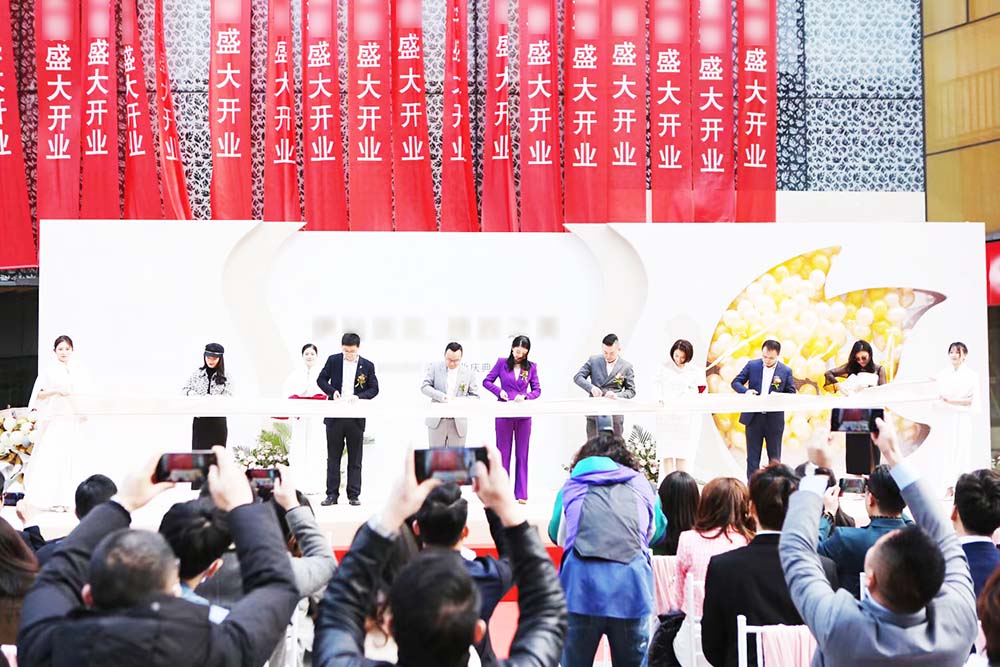開業(yè)剪彩儀式,主持人宣布剪彩嘉賓為開業(yè)剪彩并按下啟動臺,鳴放禮炮,正式開業(yè)!