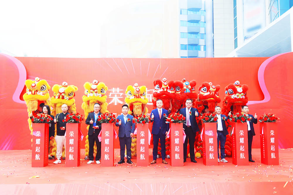 瑞獅引導領導嘉賓參觀,禮儀小姐工裝整齊排列于兩邊恭迎。