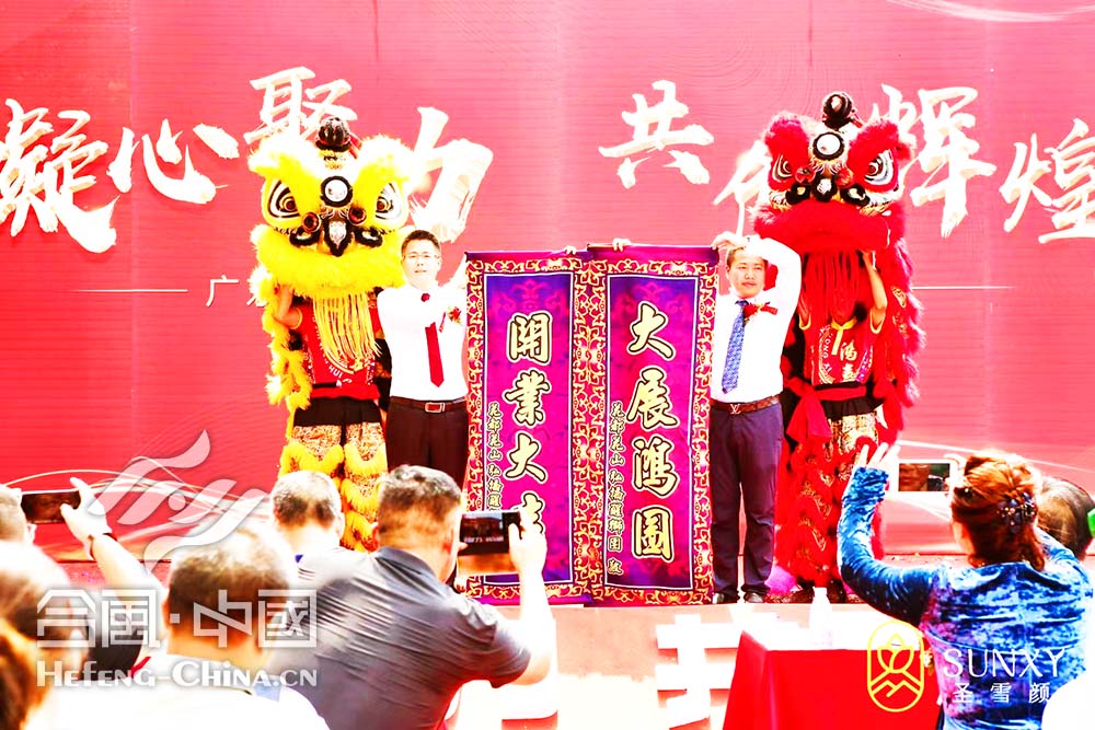 龍獅點(diǎn)睛,承運(yùn)如鵬。領(lǐng)導(dǎo)們一同上臺,手持毛筆,為兩頭祥獅點(diǎn)睛,筆落之時(shí),點(diǎn)睛禮成。十名嘉賓一同執(zhí)金剪進(jìn)行了開業(yè)剪彩儀式。十位嘉賓用手中的金剪為公司剪出一條輝煌的蓬勃發(fā)展之路,讓大家共同見證廣東圣雪顏生物科技有限公司難忘的一刻。本次剪彩環(huán)節(jié)也寓意著公司開業(yè)必將瑞氣盈門、財(cái)源廣進(jìn)、揚(yáng)帆遠(yuǎn)航!參加開業(yè)典禮的領(lǐng)導(dǎo)及嘉賓合影留念,并參觀了公司辦公場所以及產(chǎn)品展示區(qū)。隨著彩帶在一片喜慶中飛舞和舞獅的精彩表演下,開業(yè)典禮圓滿結(jié)束,標(biāo)志著企業(yè)正式步入新征程,邁向新未來,揚(yáng)帆遠(yuǎn)航,迎接更加輝煌的明天。