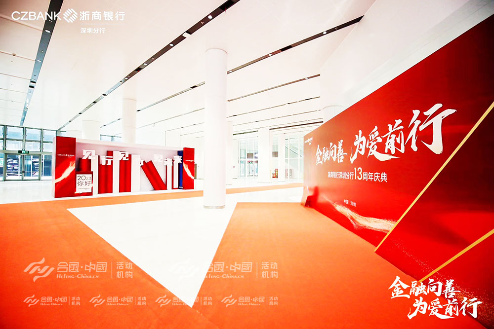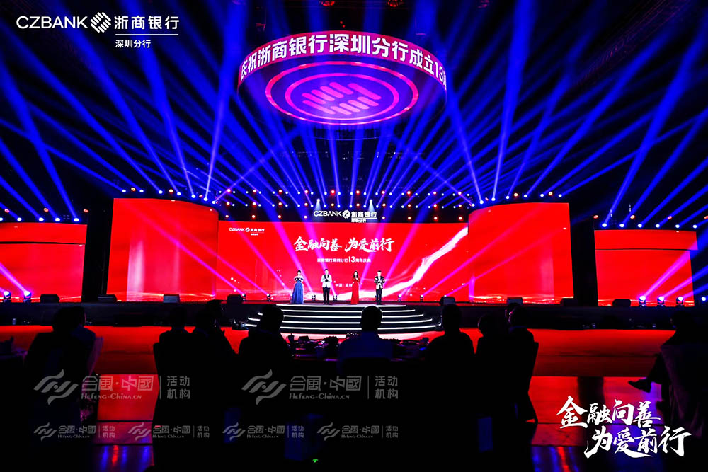 [合風(fēng)禮儀]廣東省深圳市周年慶典活動禮儀演出廣告公關(guān)傳媒會議會務(wù)慶典策劃公司4A專業(yè)服務(wù)執(zhí)行案例,2023年4月8日,“金融向善·為愛前行”浙商銀行深圳分行13周年慶典在深圳市寶安區(qū)深圳國際會展中心舉行,一場金融與藝術(shù)完美融合的盛宴,從科技感十足的激光秀到傳統(tǒng)非遺醒獅表演,從深情朗誦到鼓舞人心的員工秀,每一個環(huán)節(jié)都彰顯著浙商銀行“金融向善·為愛前行”的品牌理念。